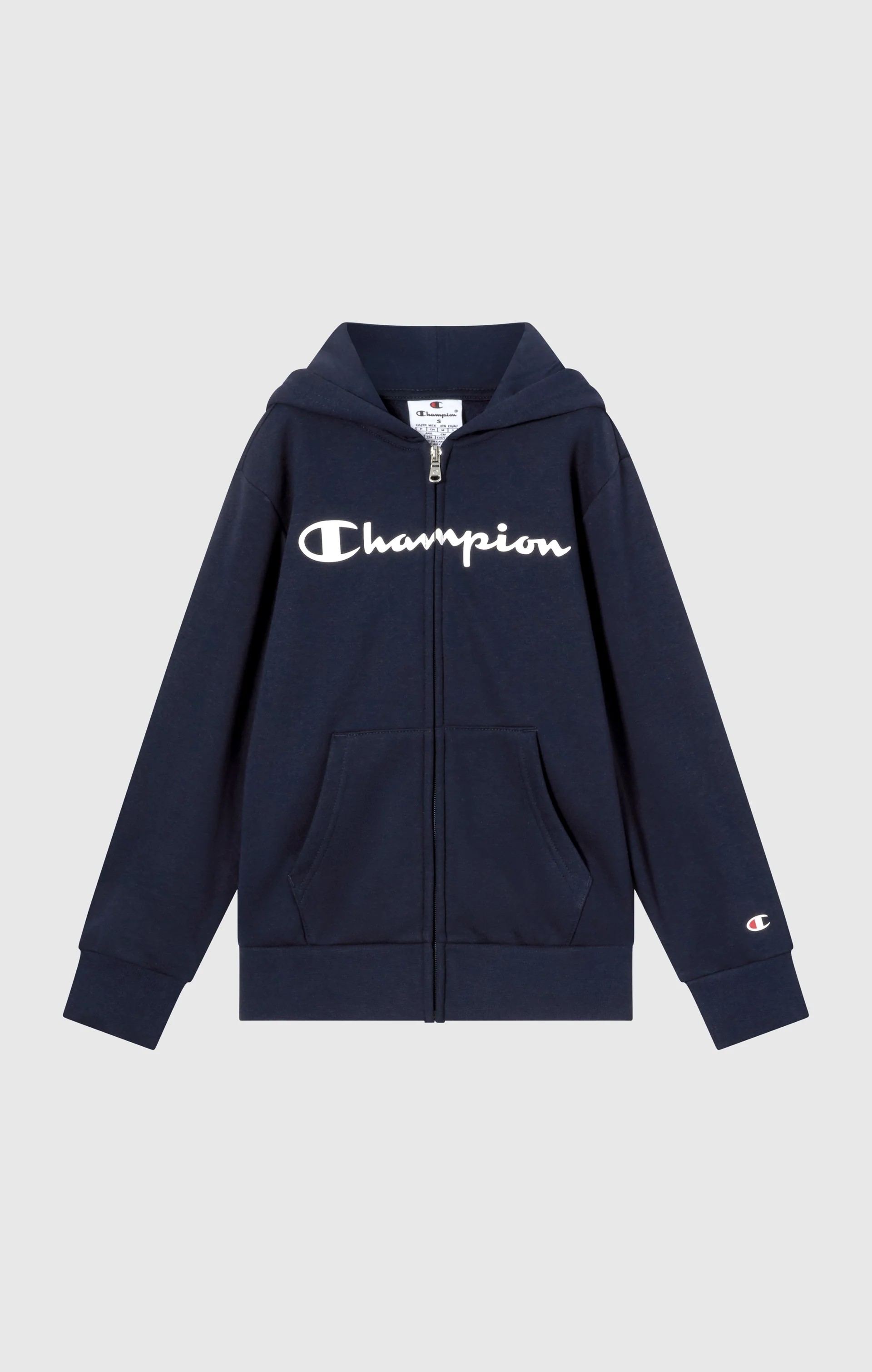 Champion-Boys-Hoodies-Apparel-Boys' Fleece Full Zip Hoodie Script Logo-Navy Blue