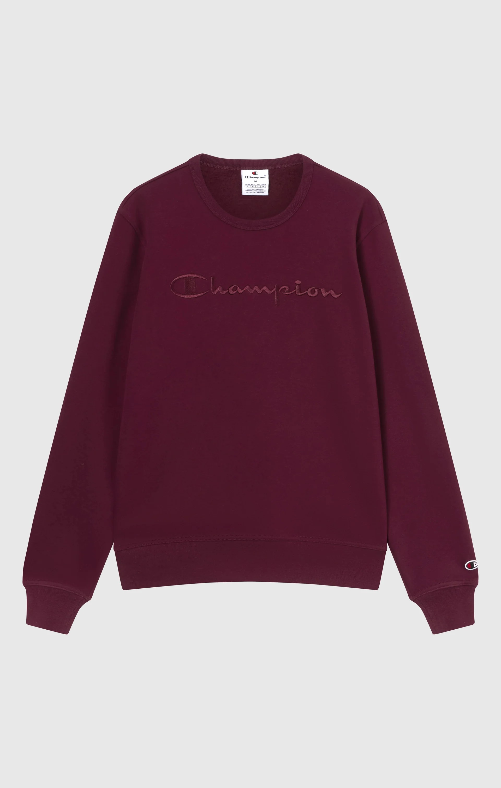 Champion-Men-Crewneck Sweatshirts-Apparel-Men's Fleece Crewneck Sweatshirt With Big Embroidered Icons-Burgundy
